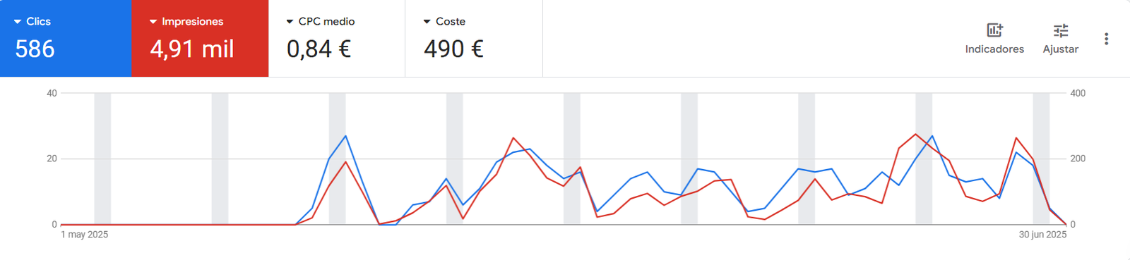 Todo iba bien hasta que se dieron cuenta de que estábamos a punto de entrar en temporada alta y no podían arriesgarse a hacer un cambio tan grande a pocas semanas de comenzar con las reservas. Por ello, decidimos implementar una campaña de búsqueda en Google Ads.